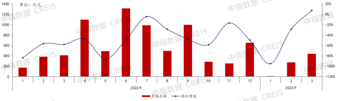 图:2022-2023年3月50家代表房企每月拿地总额