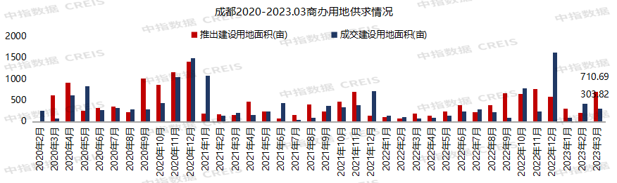 3月,成都市商品住宅供应面积为324.8万㎡,环比上升323.5%,同比上升115.7%;成交面积为205.1万㎡,环比上升39.4%,同比上升21.5%。