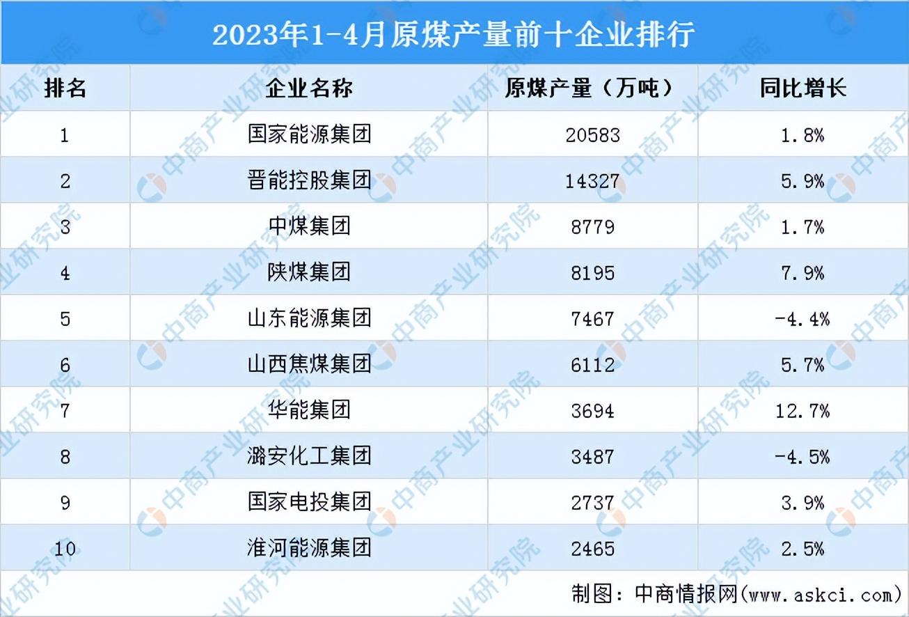【推荐】2023年14月原煤产量前十企业排行榜附榜单潞安的原煤多少钱一吨
