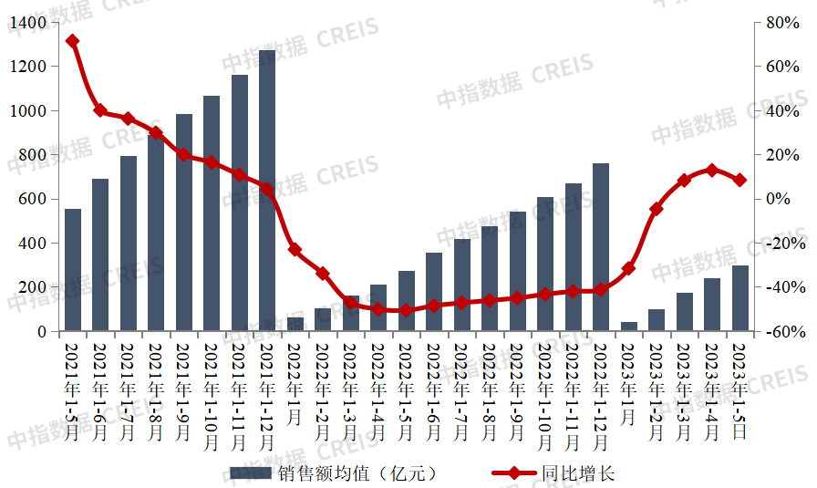 特别声明:房地产企业销售数据统计是以2023年1月1日-5月31日期间销售的并表商品房为统计口径,主要依据中指数据CREIS在各地的销售监测数据,并参考当期总体经营情况和推盘去化情况进行分析统计;对于少数没有在监测范围内的城市或项目,由企业提供相关证明文件,经课题组对数据进行严格审核,也纳入统计范围。本报告仅供参考,课题组不对使用报告及其内容所引发的任何直接或间接损失承担责任。