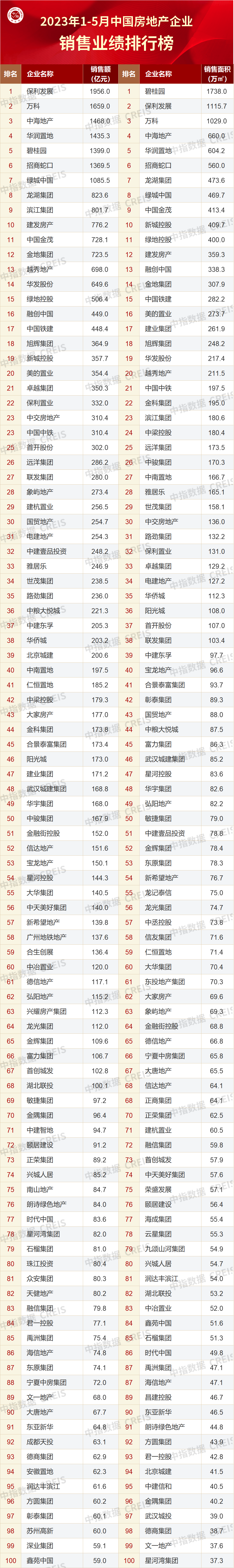 【推荐】2023年15月中国房地产企业销售业绩排行榜房地产上市公司统计