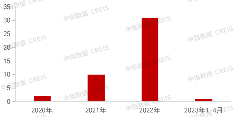 根据统计,2020年1月-2023年4月,债务违约房企有44家,其中2021年有10家,2022年有31家。具体来看,出险房企主要通过债务展期、以资抵债和债转股的形式实现债务重组。