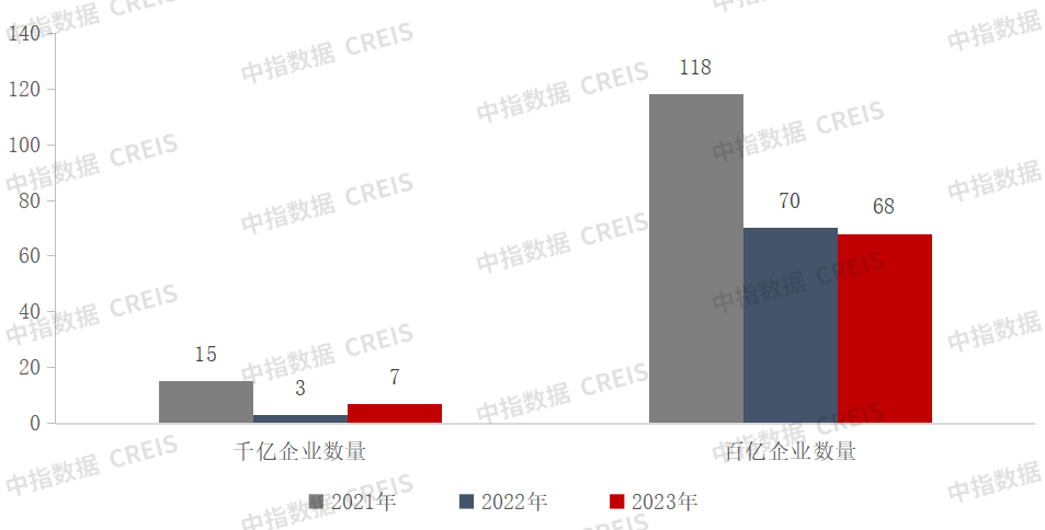 图:2021年至2023年1-5月千亿、百亿房企数量