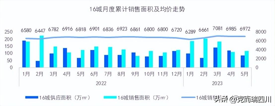 成交方面,5月16城整体销量约117万㎡,环比上涨7%,但同比下滑4%。整体看,近2月
