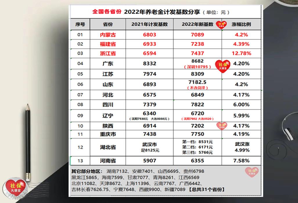 时间走到12月下旬,元旦将至,每年岁末年初,城镇职工和农民的收入往往会发生新的变化,尤其是农民朋友在年前如果能增加几百元的收入、也是有利于过年消费的,截至目前全国31个省份养老金的计发基数都已经全部公布了,比如浙江就是7437元、广东是8682元、深圳10795元单列,河北是6849元。