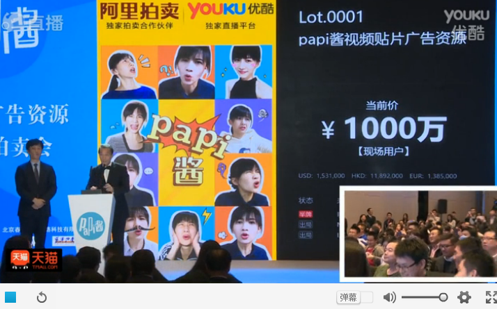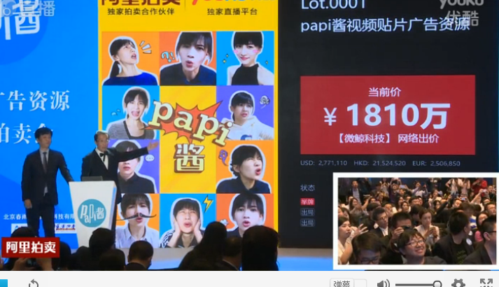 papi酱的一次广告招标值多少钱?