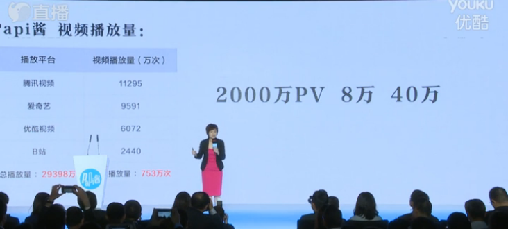 张泉灵用一组数据展示了papi酱的价值所在: