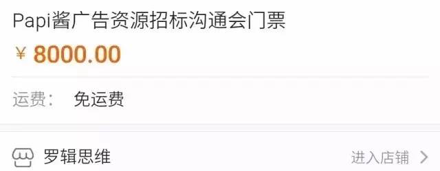 “Papi酱视频贴片广告一次 + 罗辑思维全程策划监制服务”