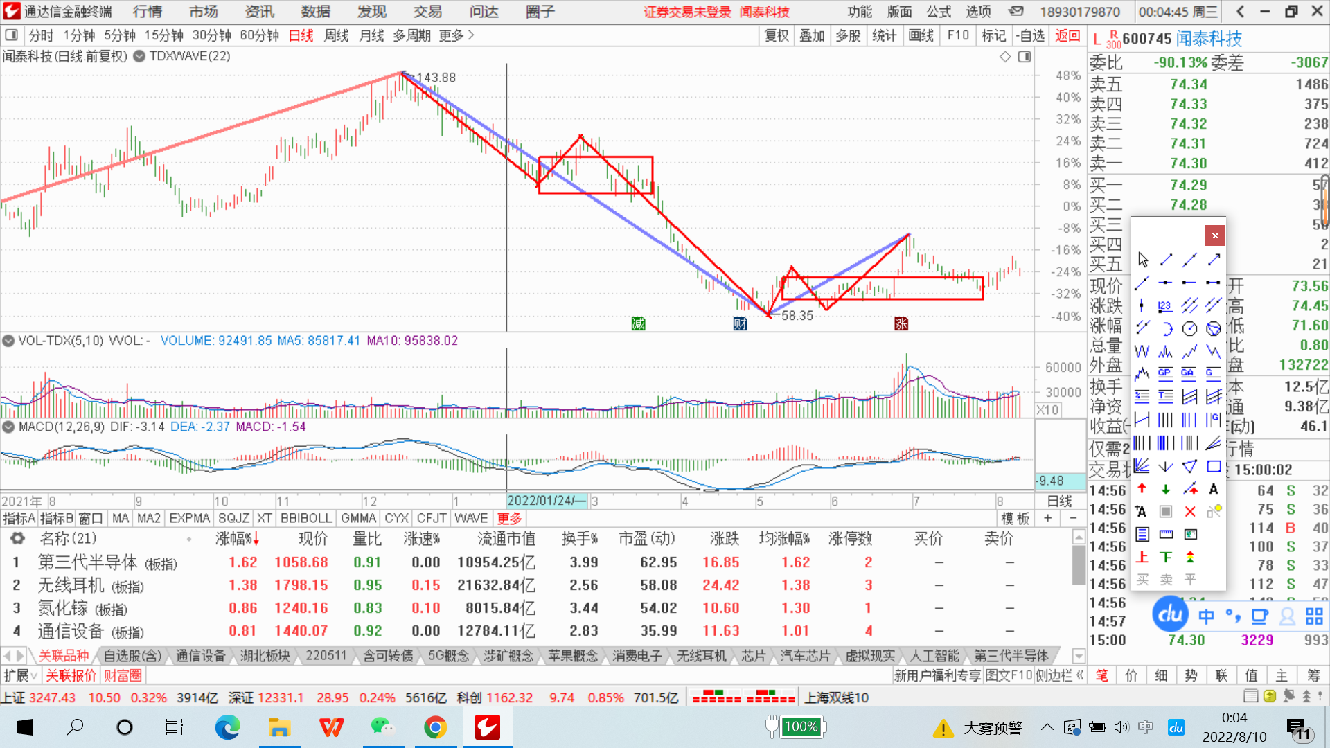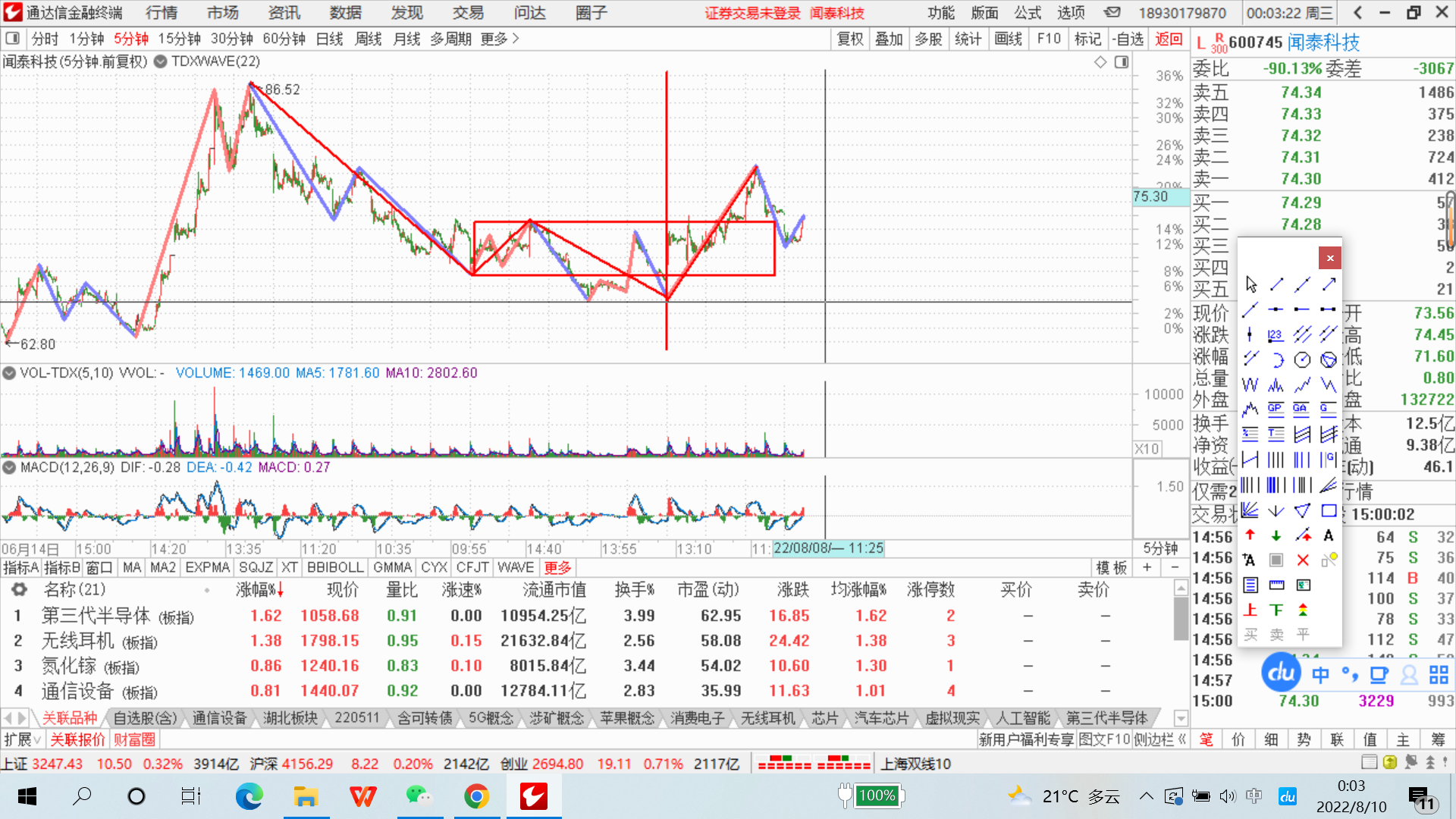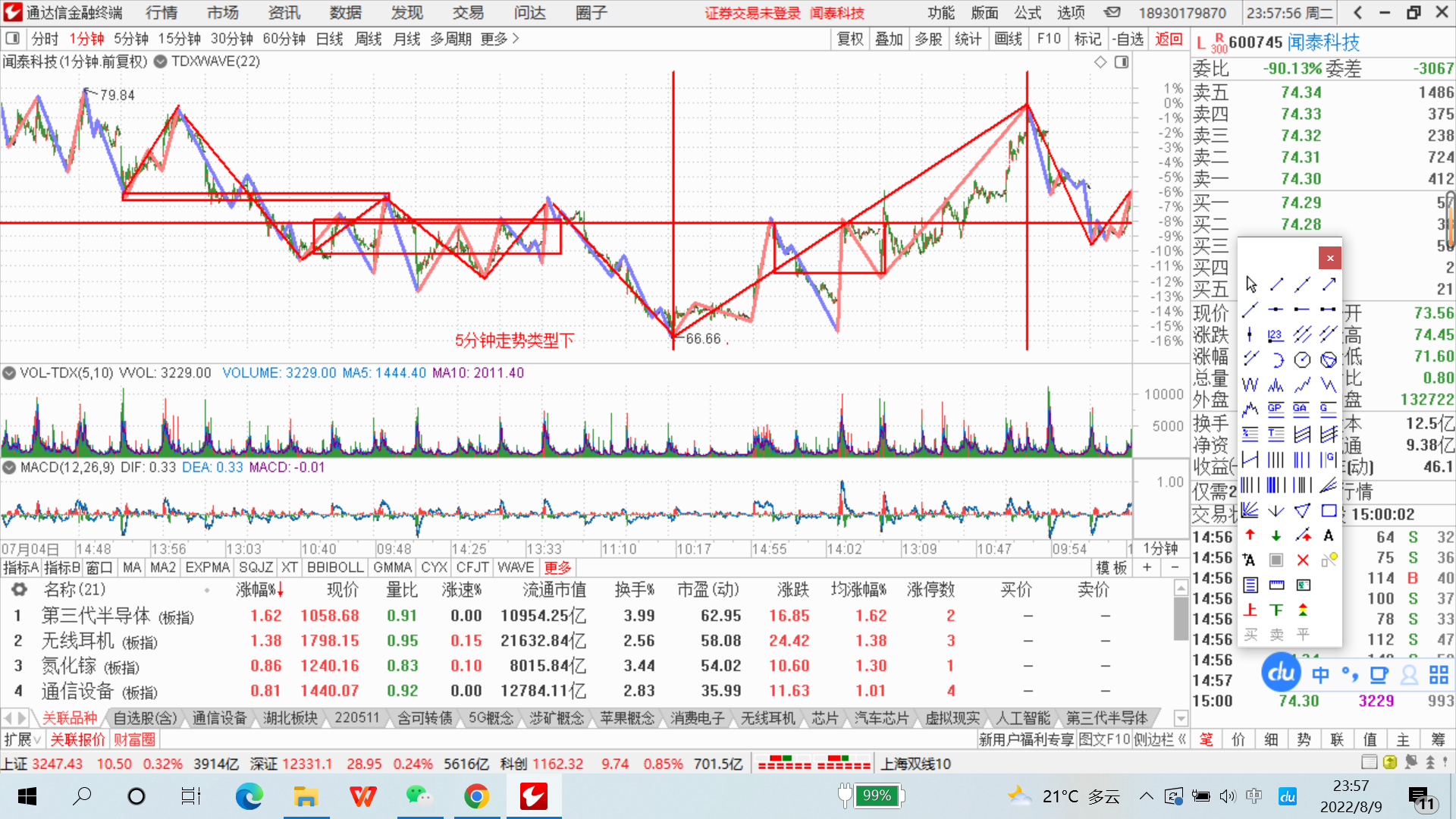 【推荐】220809图解大盘继续震荡万业企业闻泰科技士兰微士兰微大盘现在多少钱
