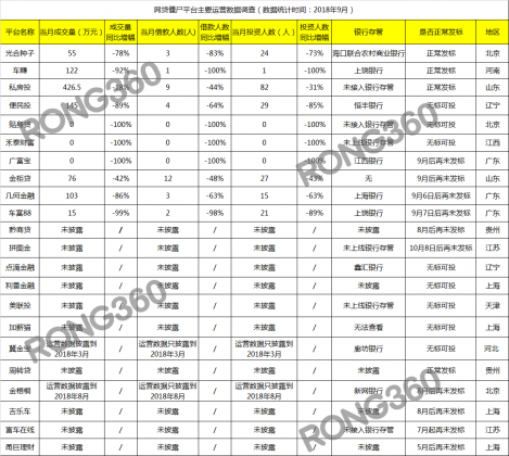 2018年三季度开始,网贷行业合规检查工作进入关键时期,P2P网贷平台、中国互金协会和当地整改办三方交叉检验,并实行一票否决制,严格程度可见一斑。融360网贷评级组也注意到一个现象,正常运营平台积极进行合规整改的同时,还有一部分体量较小、运营几乎停滞的“僵尸”平台,按照它们目前的状况来看,已经无力正常运营好一家平台,要么在等死,要么还抱着拿到备案的最后一线希望。