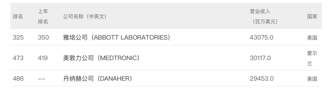 另外,在榜单中属于“医疗器材和设备”行业、但