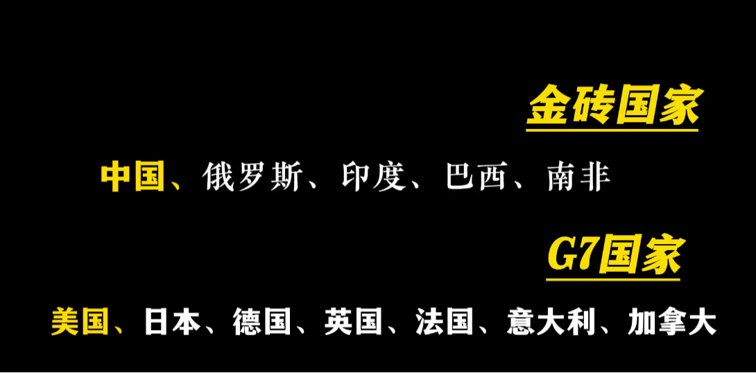 根据上图,我们能看到两国火车头在各自组织内的占比都在60%左右,分别主导了相应组织的经济发展和加速度。而G7各国家的日本、德国、法国和英国占比比较均衡,在6%-9%。意大利和南非则是各个组织中的吊车尾,存在的形式大于意义。