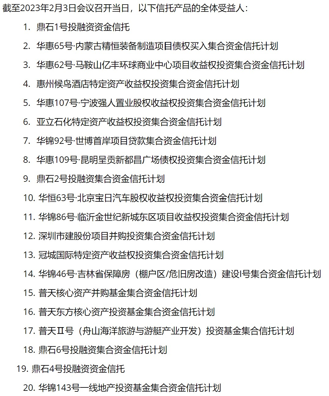 其中存在两个及以上受益人的20只产品中,均跟房地产有关