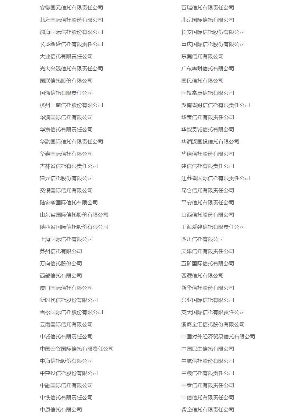 据不完全统计,除了新华信托外,至少还有安信信托、四川信托、华澳信托、新时代信托、华信信托、厦门信托、雪松信托、中融信托、中航信托和民生信托等