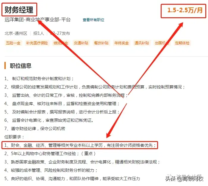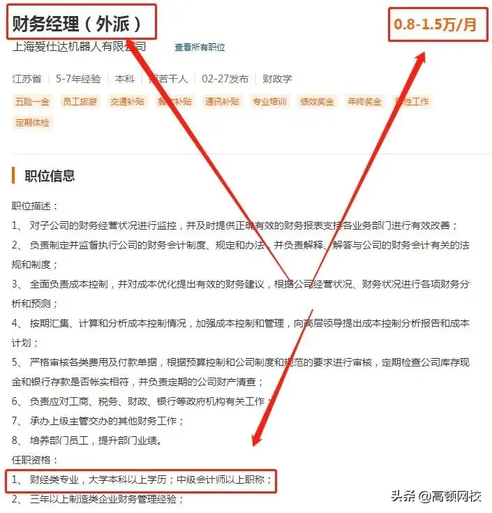 一般来说,只要是经理或者总监级别以上的岗位,都会要求你持有CPA证书,只有这样才会站在公司的“财务管理与成本控制”“公司战略”“审计开展”等方面进行全面的把控!