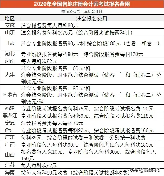 报名费是属于必要支出,每个地区每年或许会稍有差异,具体咱们看下2020年已经公布报名费的部分地区情况: