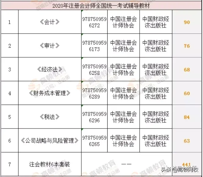 我们在这里就按标配计算,看下六科教材都购买大概多少钱!2020年CPA教材的定价已经公布: