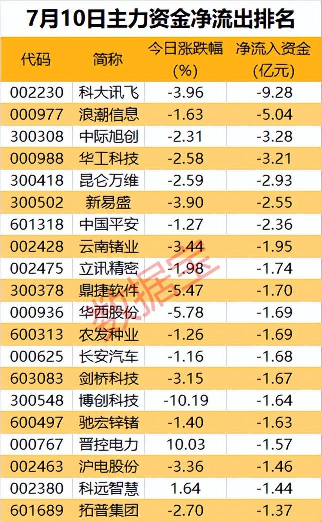 【推荐】230711主力资金AI龙头遭资金抛售超9亿元股往金来股票资讯