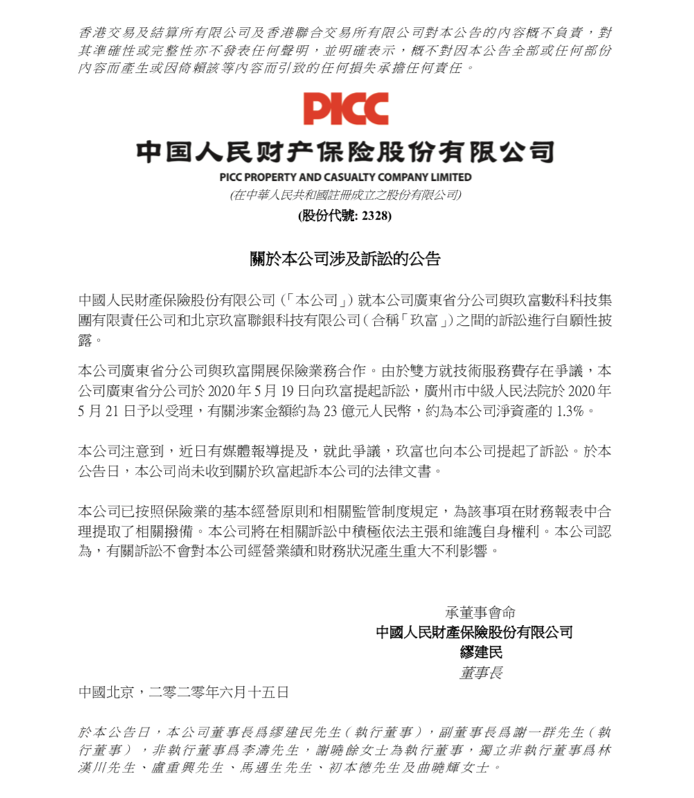 这一公告披露后,引起一片舆论哗然。人保财险随后在港交所发公告回应了此事。