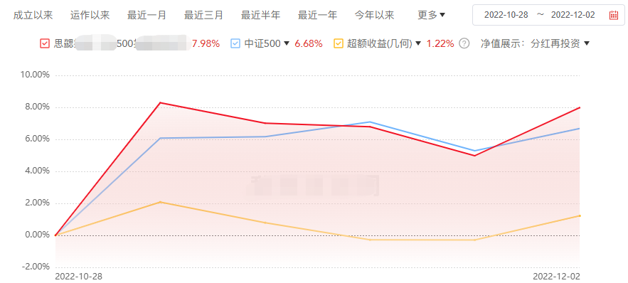 思勰500指增代表产品自购后这一个多月收益为7.98%,