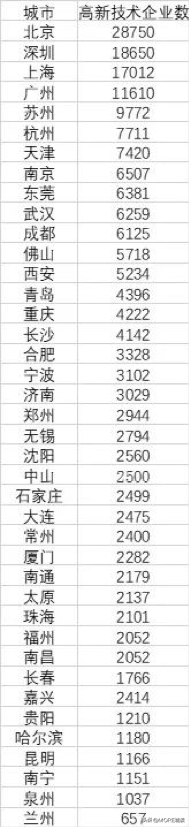北上广深的高新技术企业都突破了一万家,北京更是坐拥2.8万家。而二线城市中,除了苏州接近一万家之外,剩下的城市的高新技术企业数量还不及上海的一半。