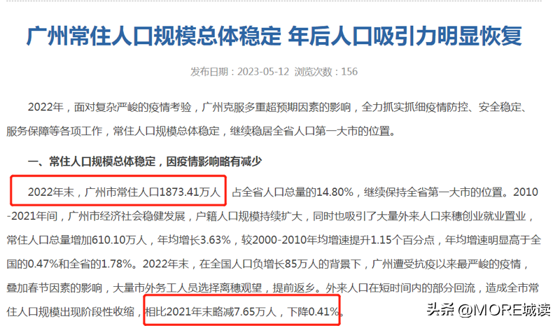 四个一线城市集体出现负增长是随着广州公布2022年统计公报:“到2022年末,广州常住人口比2021年减少了7.65万人”而板上钉钉的。