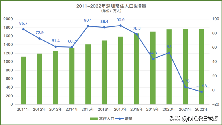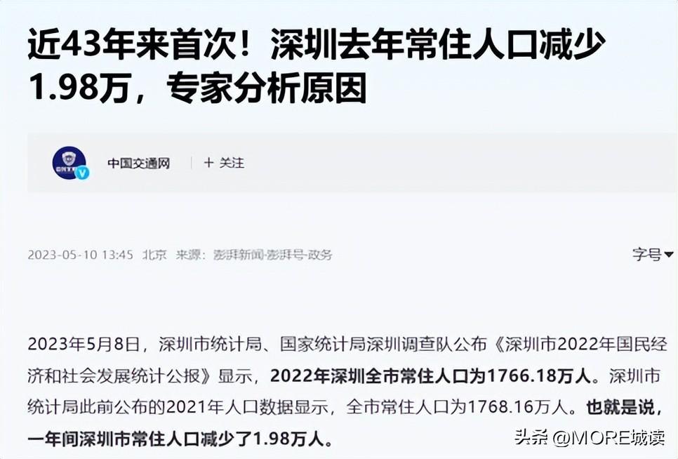 这也是深圳从1979年建市到2022年,第一次人口出现负增长。