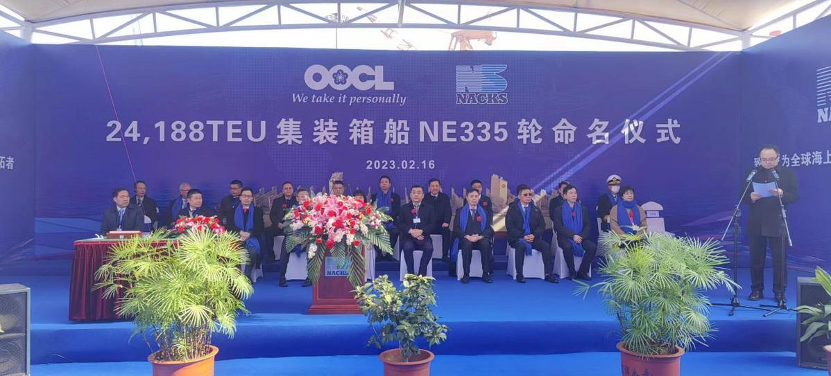 2月16日上午,全球顶级装载量、具有完全自主知识产权的24188标箱集装箱船隆重命名。这是南通中远海运川崎船舶工程有限公司继2018年完成2万标箱系列集装箱船自主设计建造之后又一力作,进一步奠定了中国超大型集装箱船建造在世界第一方阵的重要地位。