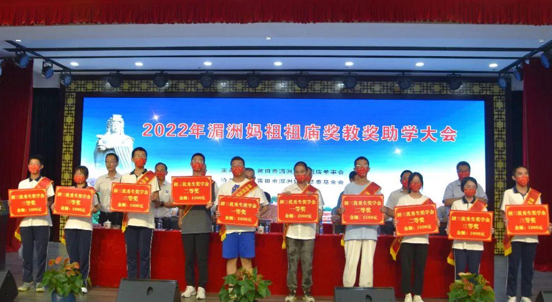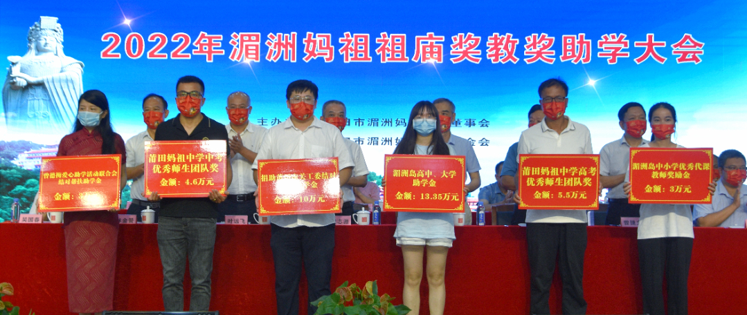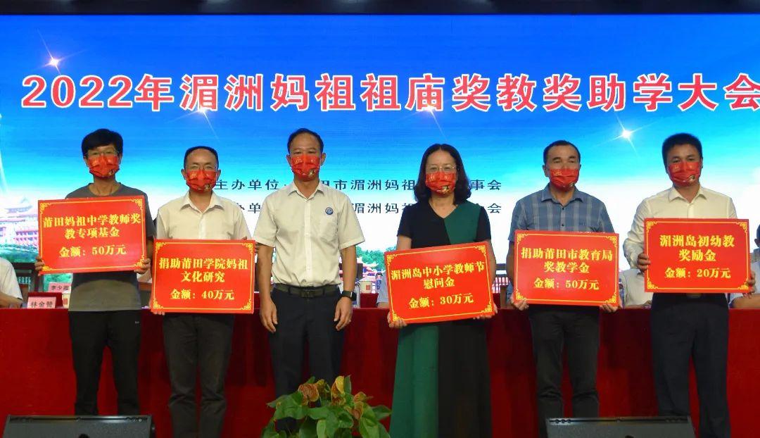 多年来,湄洲妈祖祖庙董事会大力弘扬妈祖精神,通过湄洲妈祖慈善基金会积极投身奖教奖(助)学事业。2001年至今已连续举办22届,发放奖教奖(助)学金2100多万元。捐助范围逐年扩大,捐助群体不断增加,得到社会各界人士的一致好评。
