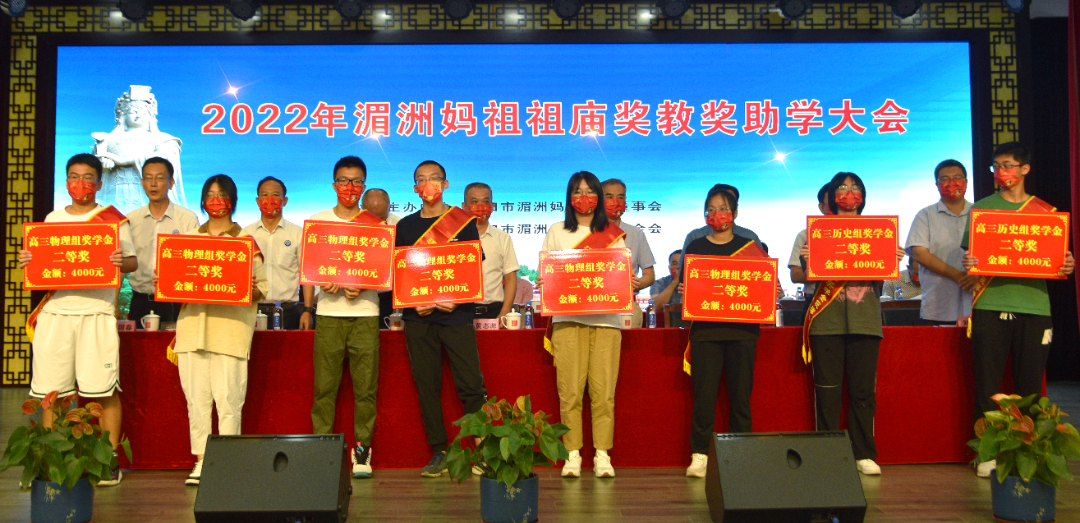 大会由湄洲妈祖祖庙董事会副董事长吴国春主持,湄洲妈祖祖庙董事会副董事长庄美华宣读《2021-2022学年奖教奖(助)学名单》。大会现场,陈元、黄志源、林金榜、叶远飞、曾捷文等领导嘉宾分批为中高考优秀学子、各学科竞赛获奖学生、专项奖教基金获得者、高中及大学受助对象等代表颁发奖教奖(助)学金,林金赞代表湄洲妈祖祖庙董事会向莆田学院、莆田市教育局、莆田市关工委等机构捐助专项基金。