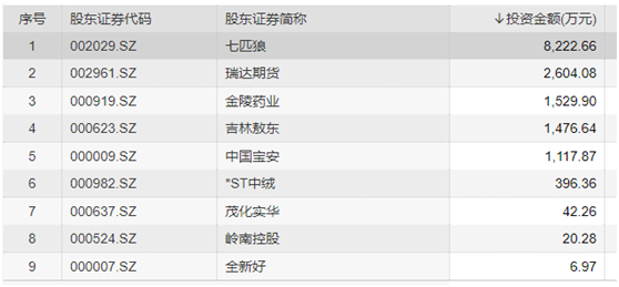 交通银行是人气第一,但被投资金额排名第一的上市公司是包钢股份(600010)。天茂集团(000627)投资315344.44万元。