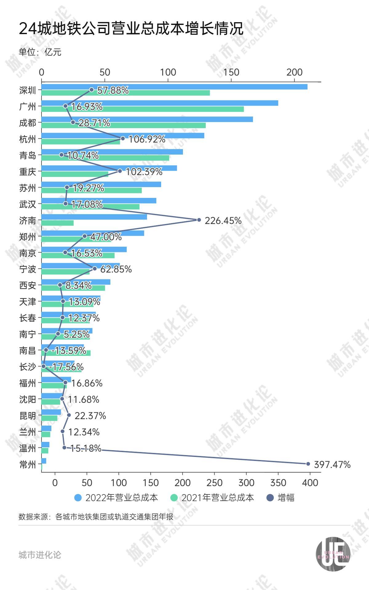 这也是推动全国城市地铁公司营业成本不断走高的重要因素。
