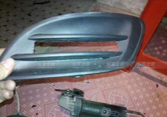 “这些砂轮机和另外的电动工具都是我老爸购入的,他平时自己也需要用到,在雾灯罩背部切割出适合的尺寸。”