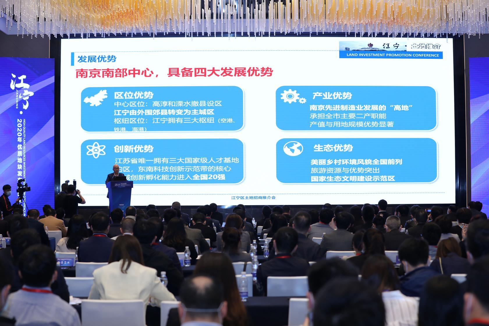 本次推介会由江宁区人民政府、南京市土地储备中心主办,南京市规划和自然资源局江宁分局、江宁区土地储备中心承办。江宁区委副书记、区长严应骏在致辞中指出,全区聚焦汽车、智能电网、新一代信息技术、生物医药、未来网络“五大产业地标”,去年引进波音777客改货等百亿级项目6个,中兴通讯、中南新能源、LG化学等一批制造业重大项目相继竣工投产,今年将重点推进土山、空港、汤山等片区城市建设和更新,实施当年投资670.3亿元、825个城建项目。江宁区将大力发扬“店小二”精神,以更优的营商环境服务企业,让江宁这块投资兴业的热土成为企业做强、做大、做久的沃土。