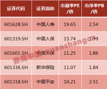 值得说明的是保险股的估值一般不采用PE和PB,而较多采用寿险公司的内含价值法与财险公司的PB法加总。不过各上市险企的业务类型和比重都不同,单一方法并不一定合理反映其估值。