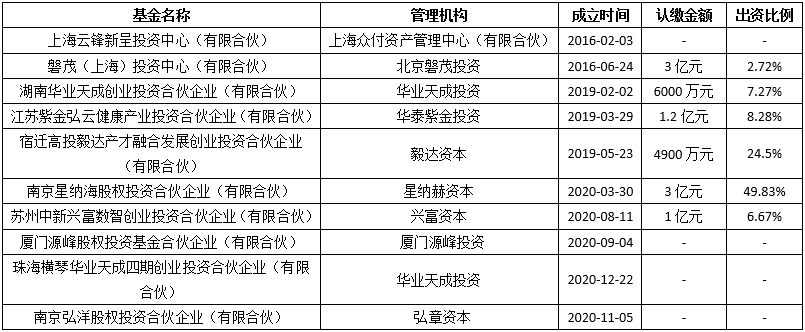 洋河股份参与的部分基金情况(数据来源:启信宝、私募通、公司公告)