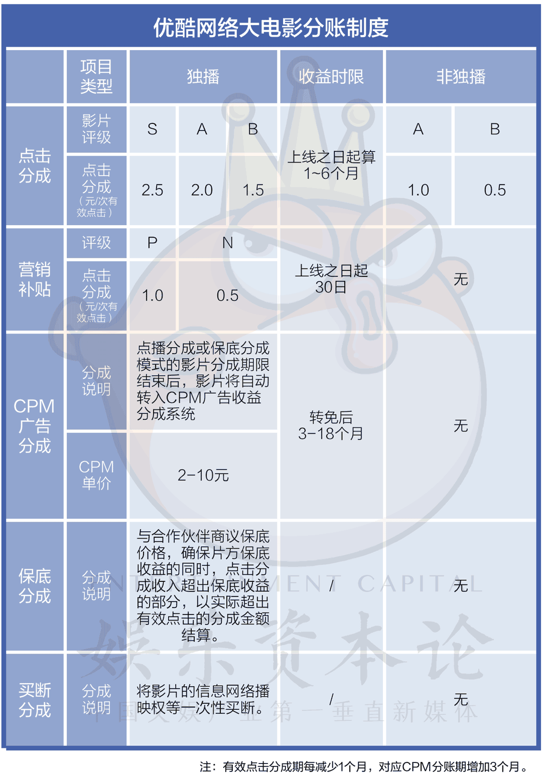 附:四大主要平台(爱奇艺、腾讯、乐视、优酷)分成模式