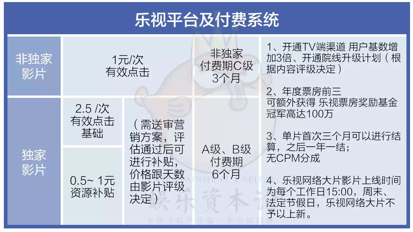 9月底,乐视正式面向合作方推出全新的付费分成系统,成为继爱奇艺、搜狐之后,第三家开通网络电影分账系统的视频网站。