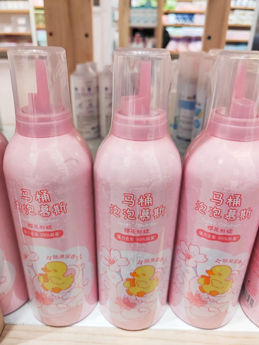 没想到吧?现在连马桶清洁剂都可以这么精致,慕斯质感,还写着樱花初绽,好家伙,心动了,买!