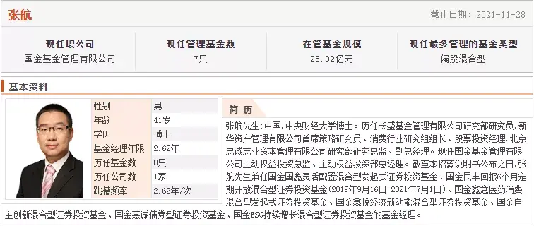 。截至本招募说明书公布之日,张航先生兼任国金国鑫灵活配置混合型发起式证券投资基金、国金民丰回报6个月定期开放混合型证券投资基金(2019年9月16日-2021年7月1日)、国金鑫意医药消费混合型发起式证券投资基金、国金鑫悦经济新动能混合型证券投资基金、国金自主创新混合型证券投资基金、国金惠诚债券型证券投资基金、国金ESG持续增长混合型证券投资基金的基金经理。