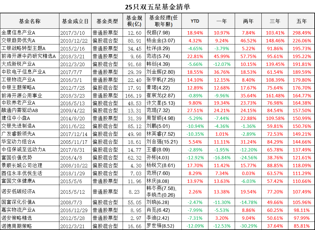 本文将25只优秀基金汇总在一起PK,看看各自都有哪些特点、短中长表现如何。