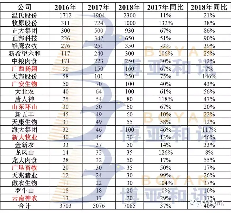 截止到2018年4月底,调查25家畜牧企业2017年生猪销售情况,合计生猪出栏达5076万头;2018年规模企业生猪产能继续释放,出栏量将继续保持较快增长,预计2018年25家企业生猪出栏量将在7000万头以上,同比增幅将达40%。
