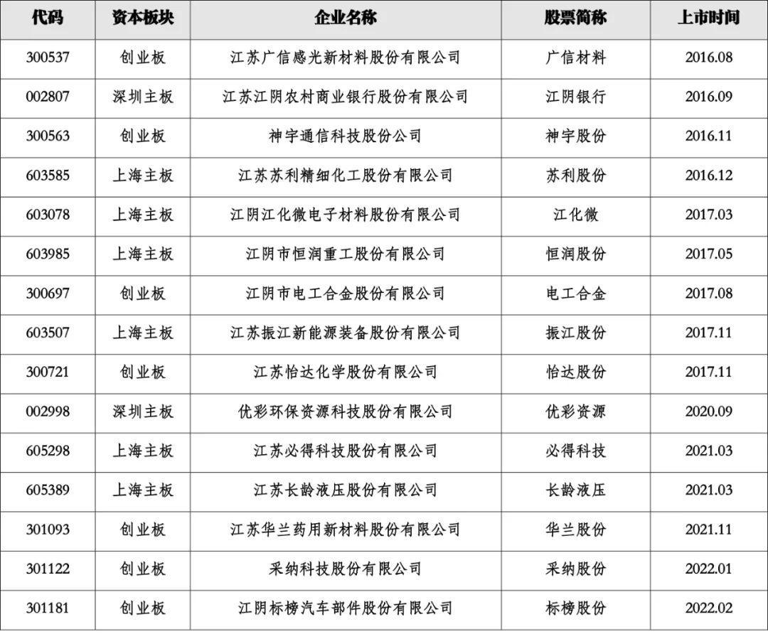 2016年至今,江阴上市的A股