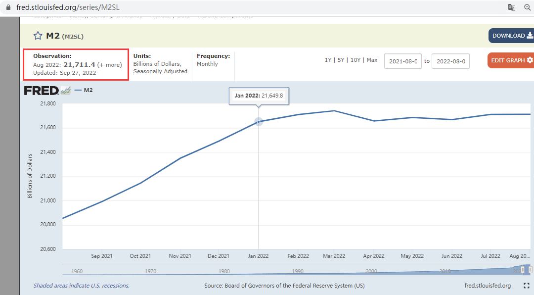 8月美元M2是21.71万亿美元,1月份是21.649万亿美元。