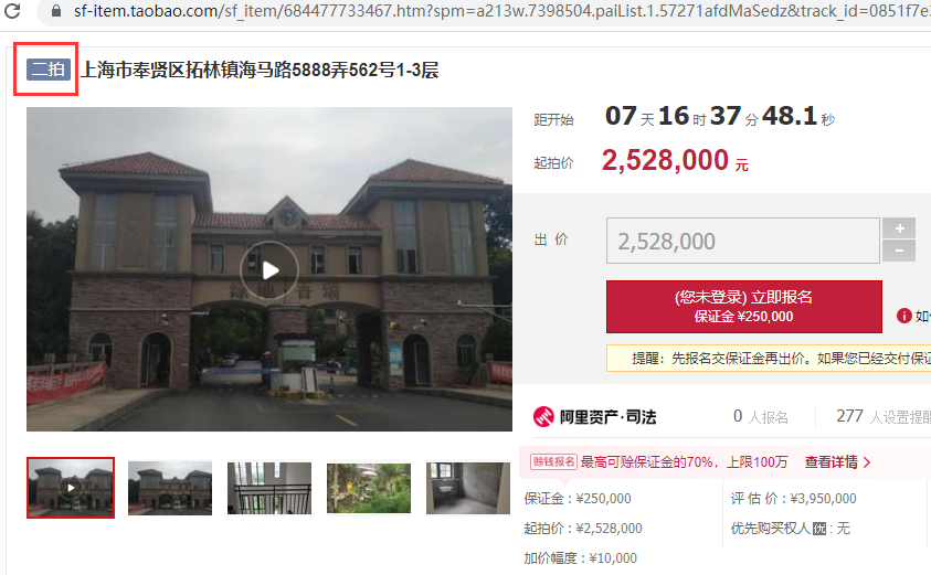 比方说,上海奉贤这套别墅法拍,是二拍,就是一拍流拍。