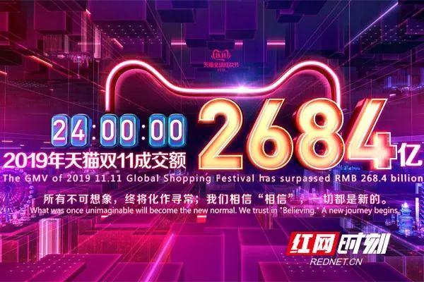 2019天猫双11交易总额为2684亿元。