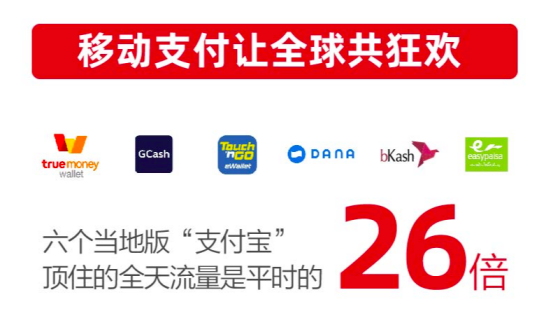 就像中国的支付宝必须通过多年天猫双11尖峰历练一样,本地钱包们也度过了本年度的网购峰值压力。来自支付宝的最新数据显示:2019天猫双11当天,六个当地版“支付宝”顶住的全天流量是平时的26倍。