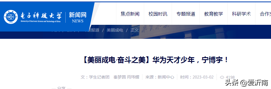 最近,据电子科技大学披露,2022年秋季校园招聘中,该校博士研究生宁博宇进入华为,成为“天才少年”项目一员,年薪百万。