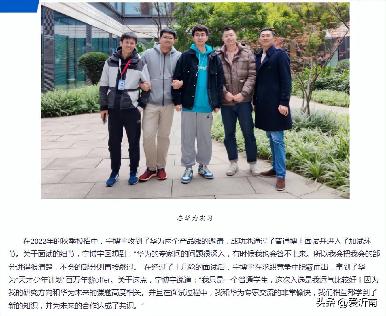 宁博宇表示:“我只是一个普通学生,这次入选是我运气比较好!因为我的研究方向和华为未来的课题高度相关。”