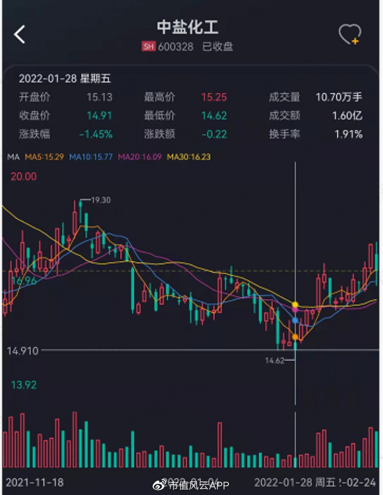二级市场也很给面子,盐化工股价随后也一路上涨。